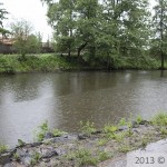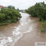 Benátky nad Jizerou. Velká voda na řece Jizera. 3.6. 2013 v 8:30 hod.